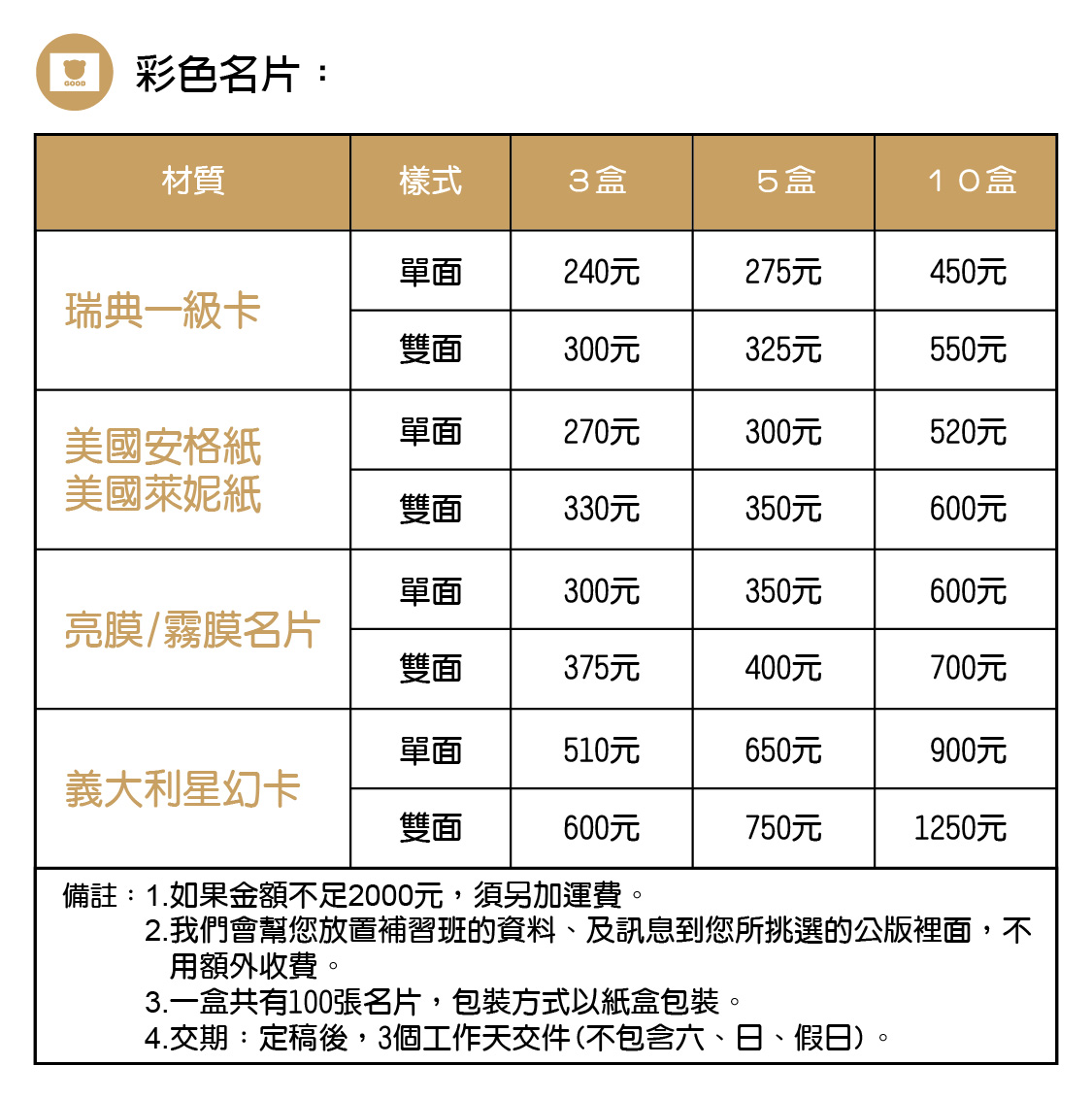品名:公版名片