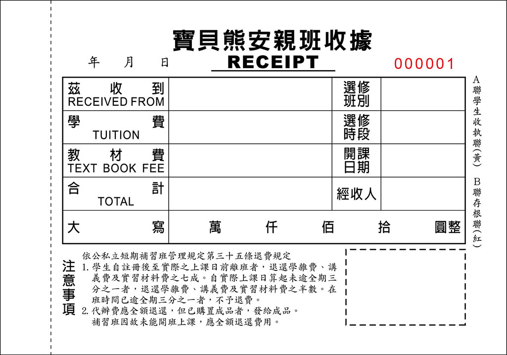 品名:收費收據